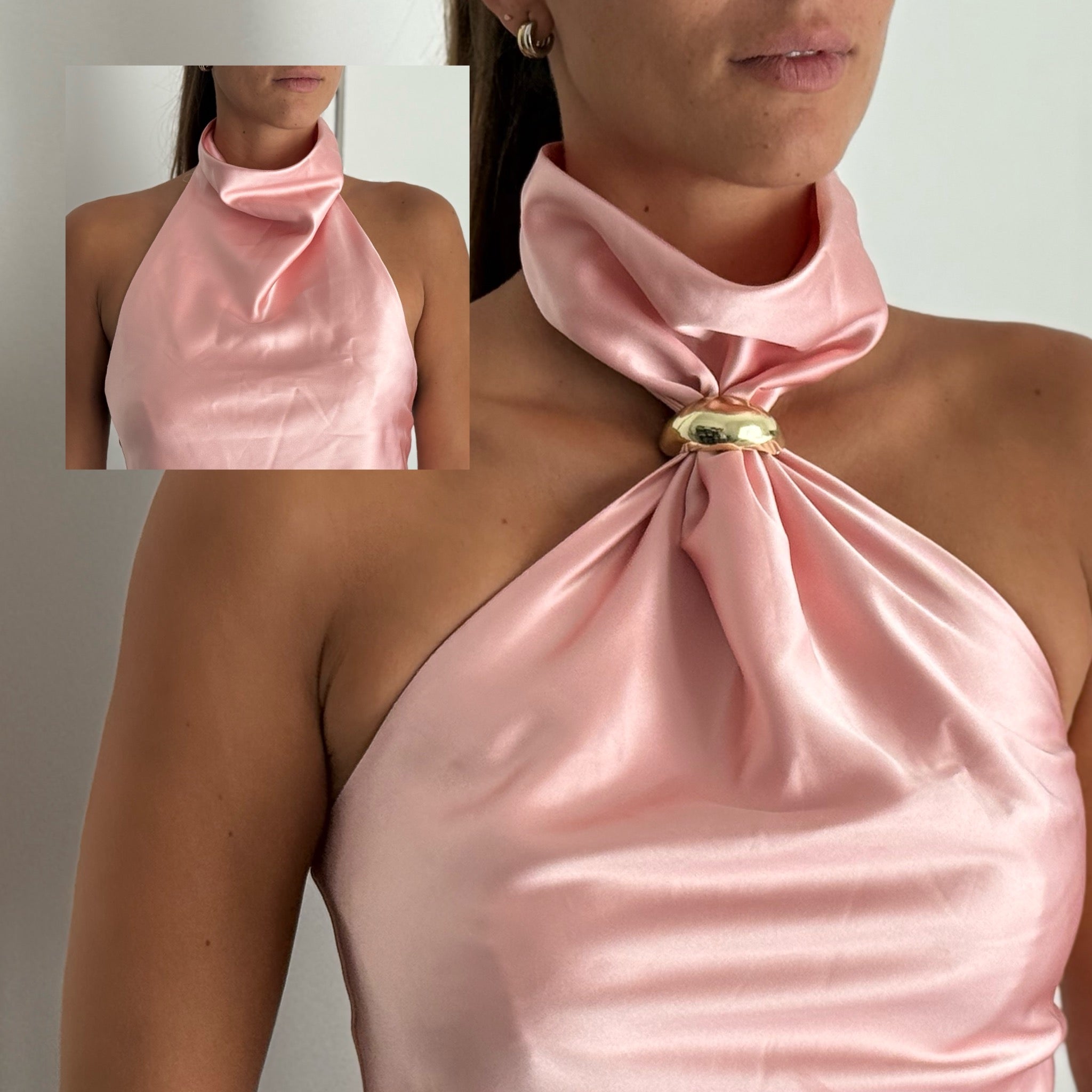 With just one move, it restyles dresses, blouses, tops, or tees into refined silhouettes.
